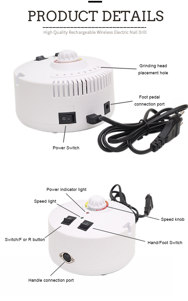 Portable Nail Drill Set Electric With Powerful Motor 65w 35000rpm