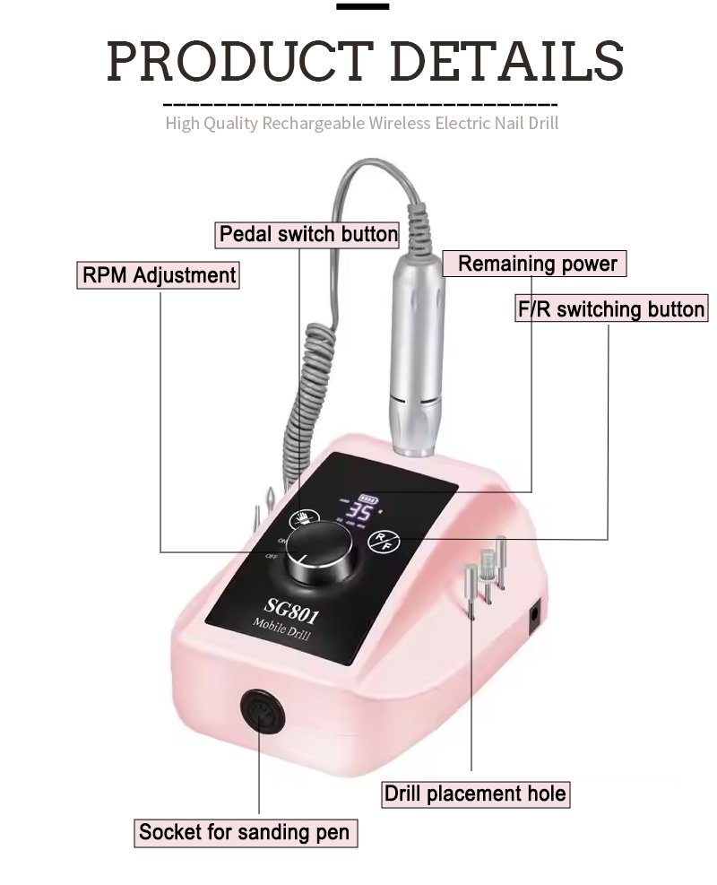 | 35,000 RPM Electric Portable Gel Nail Drill Detalye |