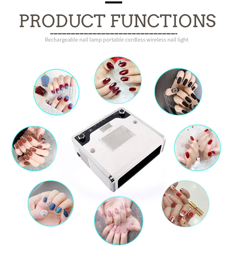 Ang 4-in-1 na Multi-Function Nail Lamp ay nagtatampok ng infrared smart sensing technology na awtomatikong nag-iilaw kapag lumalapit ang mga kamay at nag-o-off kapag lumalayo ang mga kamay—inaalis ang abala ng paulit-ulit na pagpindot sa mga button at nakakatipid ng oras at pagsisikap. Ang high-power baking glue ay hindi nangangailangan ng mahabang paghihintay, na nakakatipid ng oras at pagsisikap.