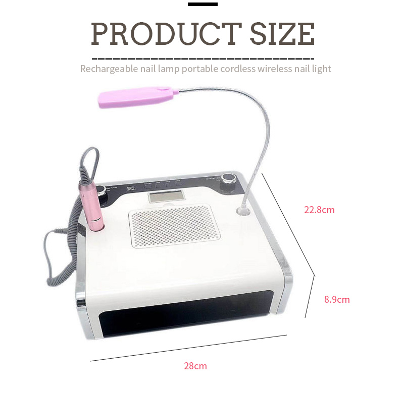 Ang mga sukat ng 4-in-1 na multi-function na nail lamp na ito ay 280 mm ang haba, 228 mm ang lapad at 89mm ang taas, na may malaking kapasidad at ang kakayahang gumamit ng parehong mga kamay at paa, na kung saan ay napaka-maginhawa.