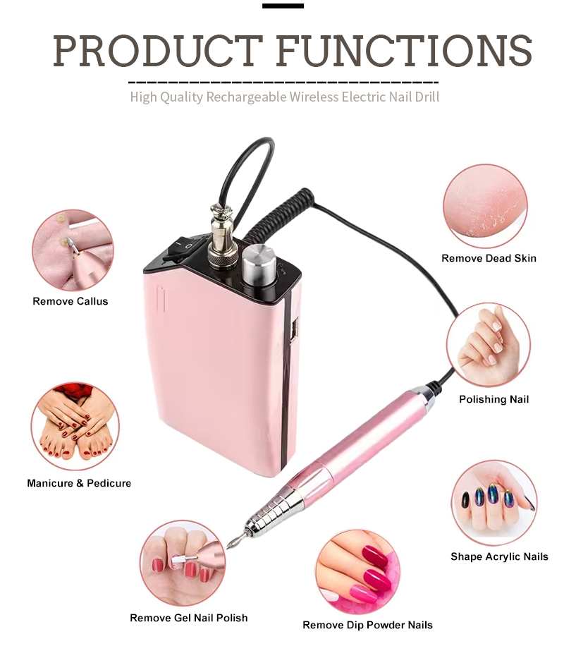 Rechargeable Nail Drill Set With Powerful Handpiece 45w 35000rpm