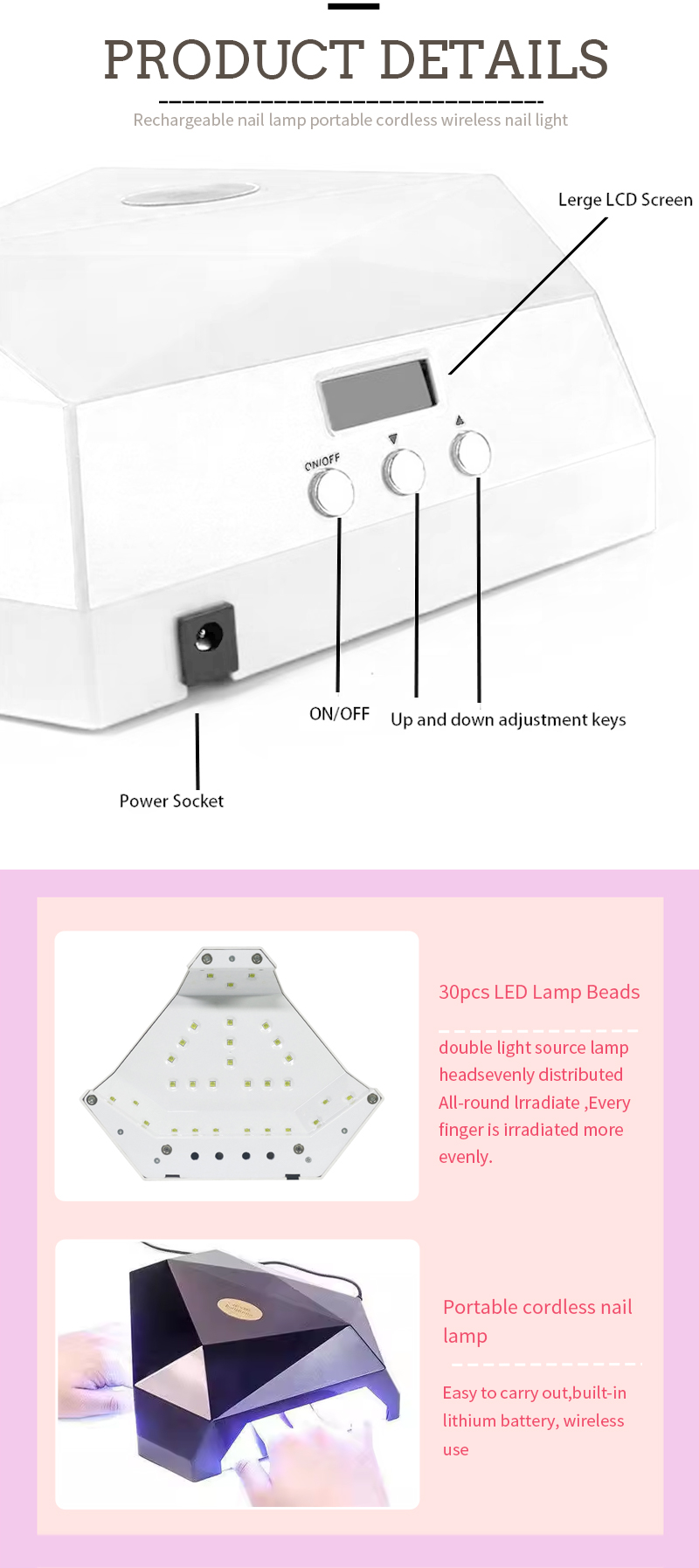 Tinitiyak ng produkto kahit na ang pagpapatayo ng pandikit nang walang pag -urong. Ang dalawahang ilaw na mapagkukunan nito ay nagbibigay ng banayad na pag -init upang maiwasan ang pagkawalan ng kulay ng kamay at pilay ng mata, na angkop para sa parehong mga kamay at paa, na naghahatid ng napakabilis na mga resulta ng pagpapatayo.