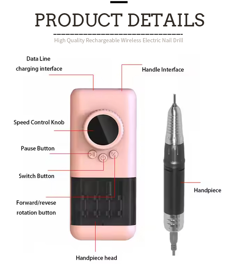 Portable Nail Drill Set Electric With Powerful Motor 65w 35000rpm
