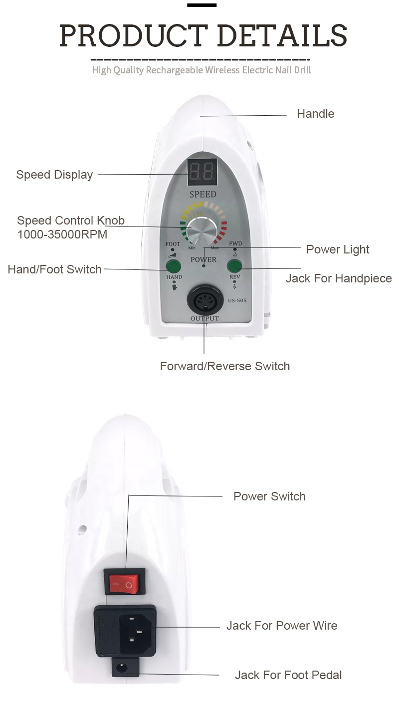 Tampok ng Produkto at Application ng 702 Mataas na Bilis 35000 RPM Nail Polish Remover Electric Nail File