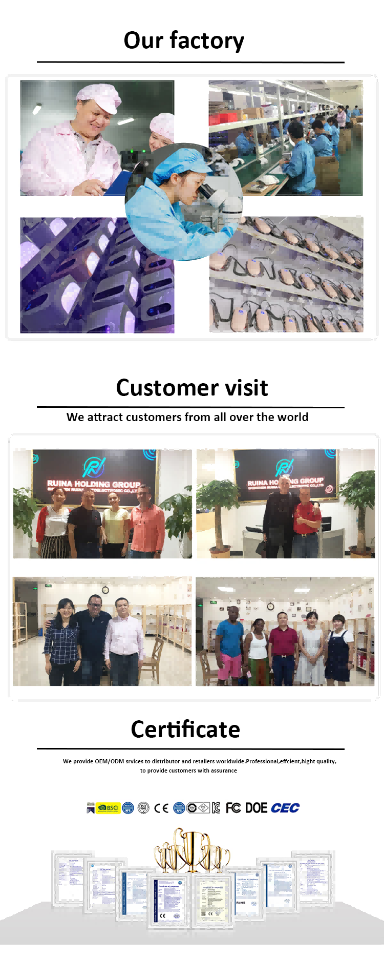 Nagbibigay kami ng mga serbisyo ng OEM/ODM para sa mga pandaigdigang distributor at retailer. Propesyonal, mahusay, at may natatanging kalidad, nag-aalok kami ng maaasahang kasiguruhan sa aming mga kliyente.