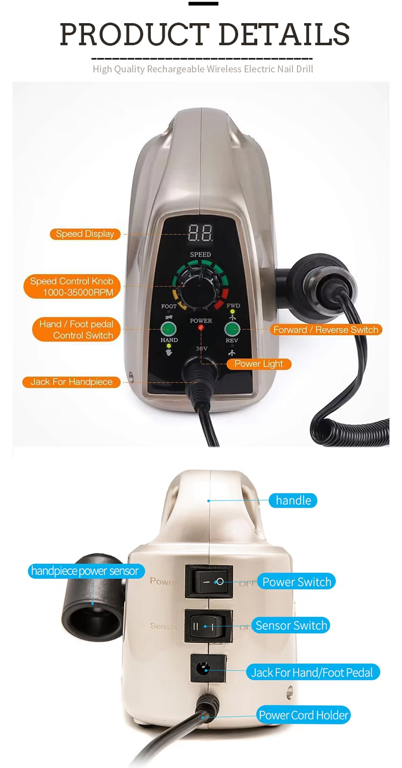 Portable Nail Drill Set Electric With Powerful Motor 65w 35000rpm