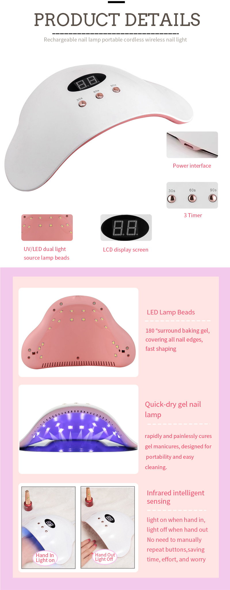 • Mataas na lakas na LED bombilya para sa mabilis na 10 segundo gel curing