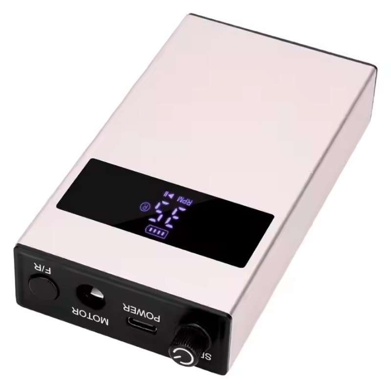 Ang disenyo ng display ng low-noise na portable nail drill kit na ito ay may on/off switch at forward/reverse rotation para sa kabuuang one-button activation, quick-charging socket sa ibaba, mapapalitang drill socket sa itaas, at three-position adjustable speed para matugunan ang iba't ibang pangangailangan.
