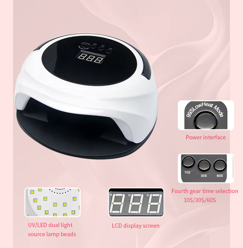 Ang nail drying lamp na may automatic sensor function ay nagtatampok ng infrared smart sensing technology na awtomatikong nag-iilaw kapag lumalapit ang mga kamay at namamatay kapag lumalayo ang mga kamay—inaalis ang abala ng paulit-ulit na pagpindot sa mga button at nakakatipid ng oras at pagsisikap. Ang high-power baking glue ay hindi nangangailangan ng mahabang paghihintay, na nakakatipid ng oras at pagsisikap.