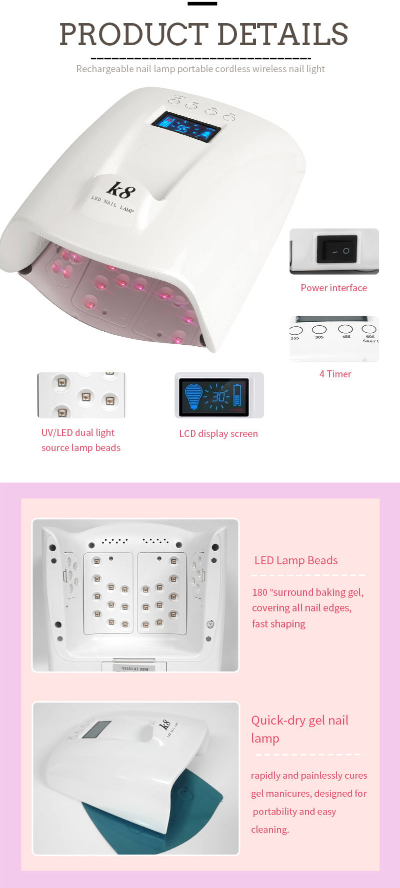 • Mataas na lakas na LED bombilya para sa mabilis na 10 segundo gel curing