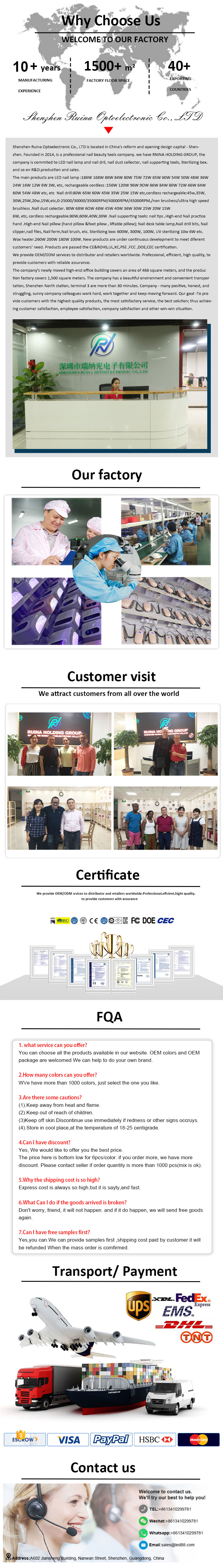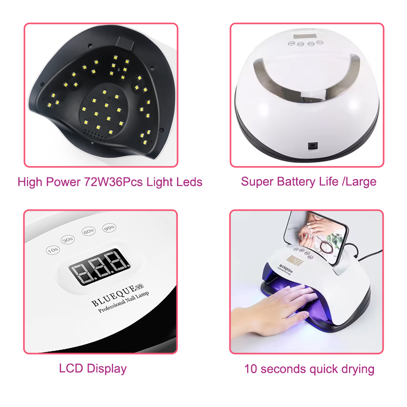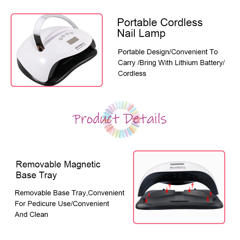 Tinitiyak ng produkto ang pantay na pagpapatuyo ng pandikit nang walang pag-urong. Ang dalawahang pinagmumulan ng liwanag nito ay nagbibigay ng banayad na pag-init upang maiwasan ang pagkawalan ng kulay ng kamay at pagkapagod ng mata, na angkop para sa parehong mga kamay at paa, na naghahatid ng napakabilis na mga resulta ng pagpapatuyo.