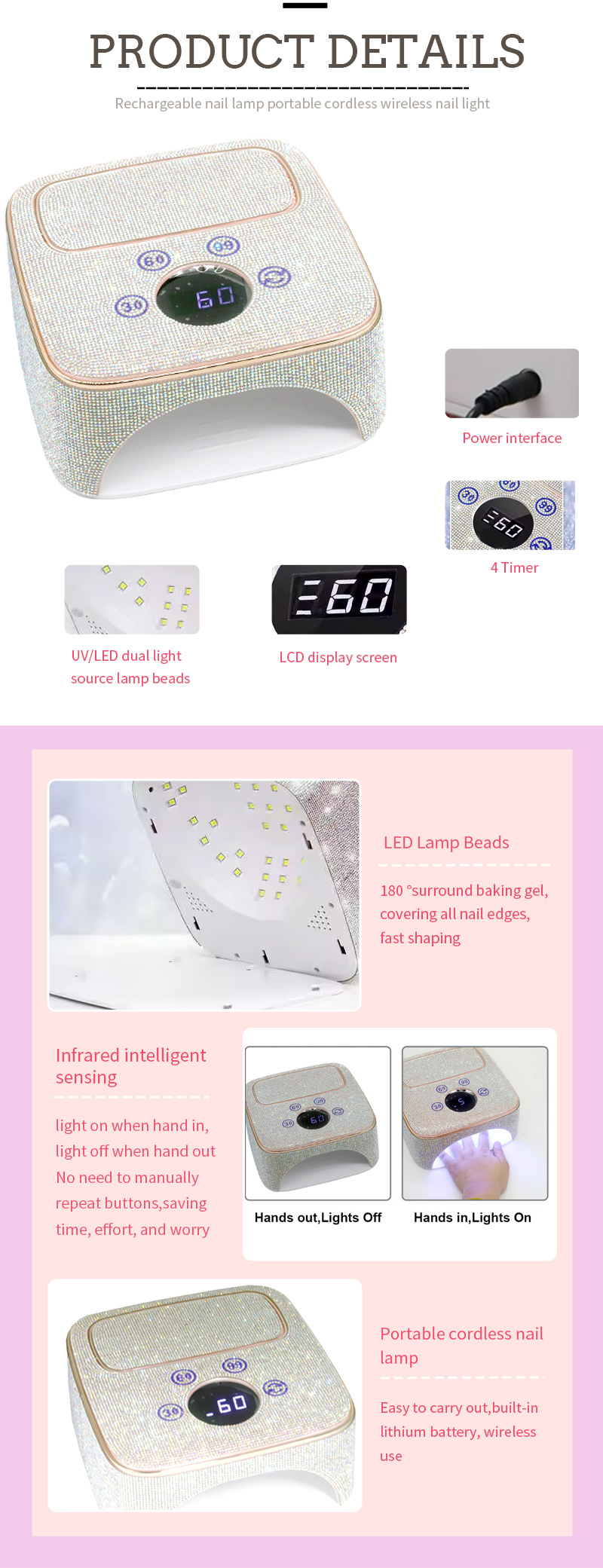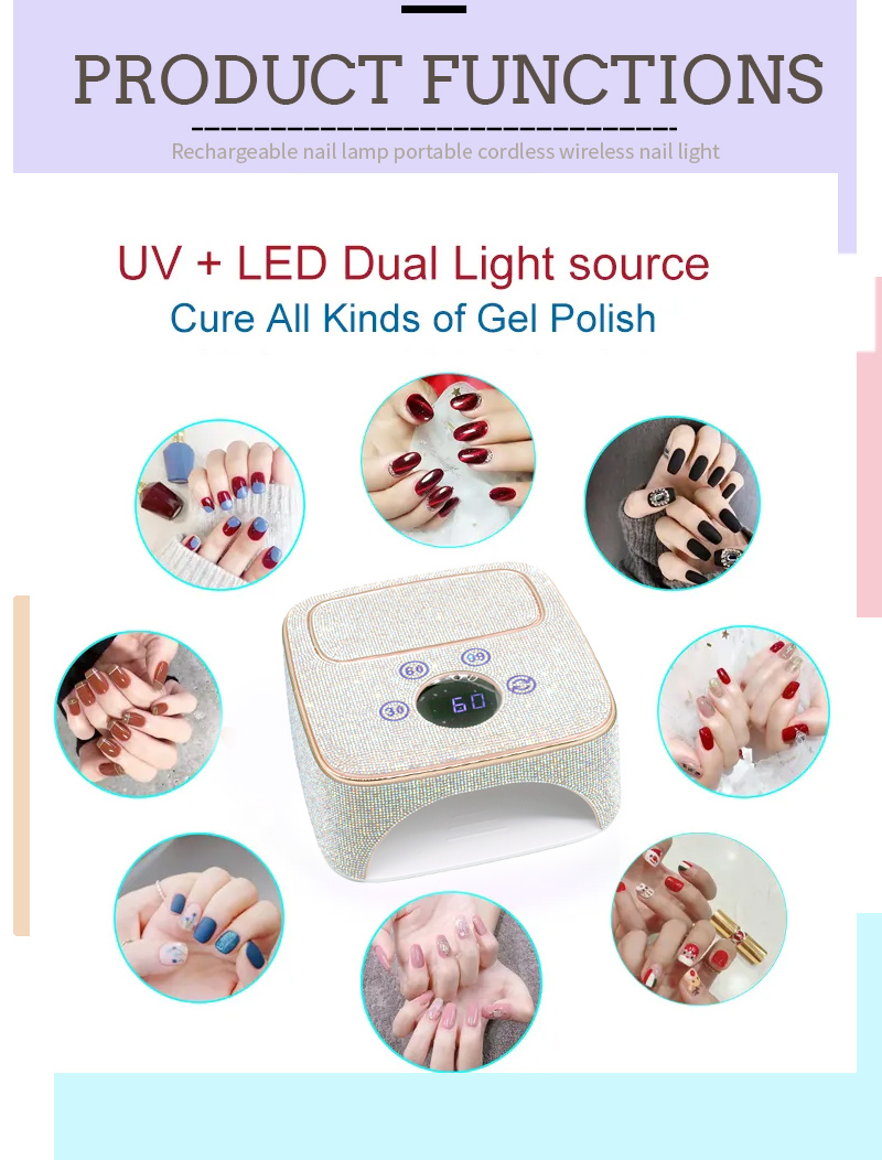 1, dalawahang ilaw na mapagkukunan ng LED beads, maaaring maghurno ng iba't ibang mga pandikit ng kuko at functional glue.