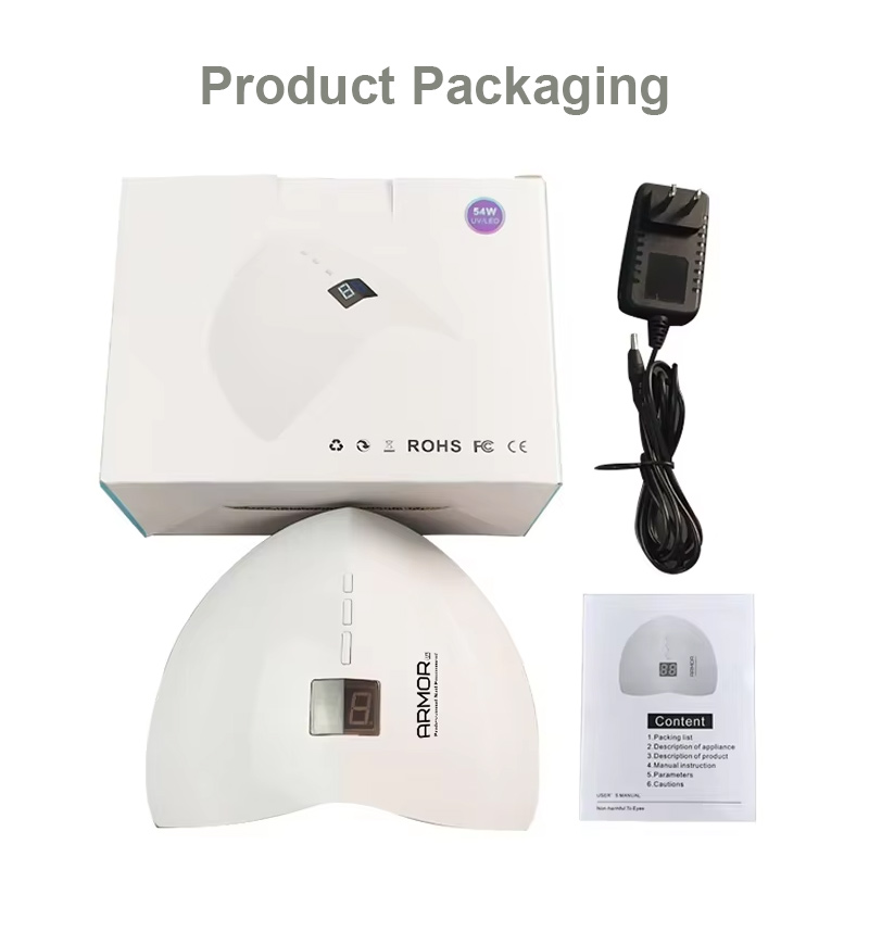 Tinitiyak ng produkto kahit na ang pagpapatayo ng pandikit nang walang pag -urong. Ang dalawahang ilaw na mapagkukunan nito ay nagbibigay ng banayad na pag -init upang maiwasan ang pagkawalan ng kulay ng kamay at pilay ng mata, na angkop para sa parehong mga kamay at paa, na naghahatid ng napakabilis na mga resulta ng pagpapatayo.