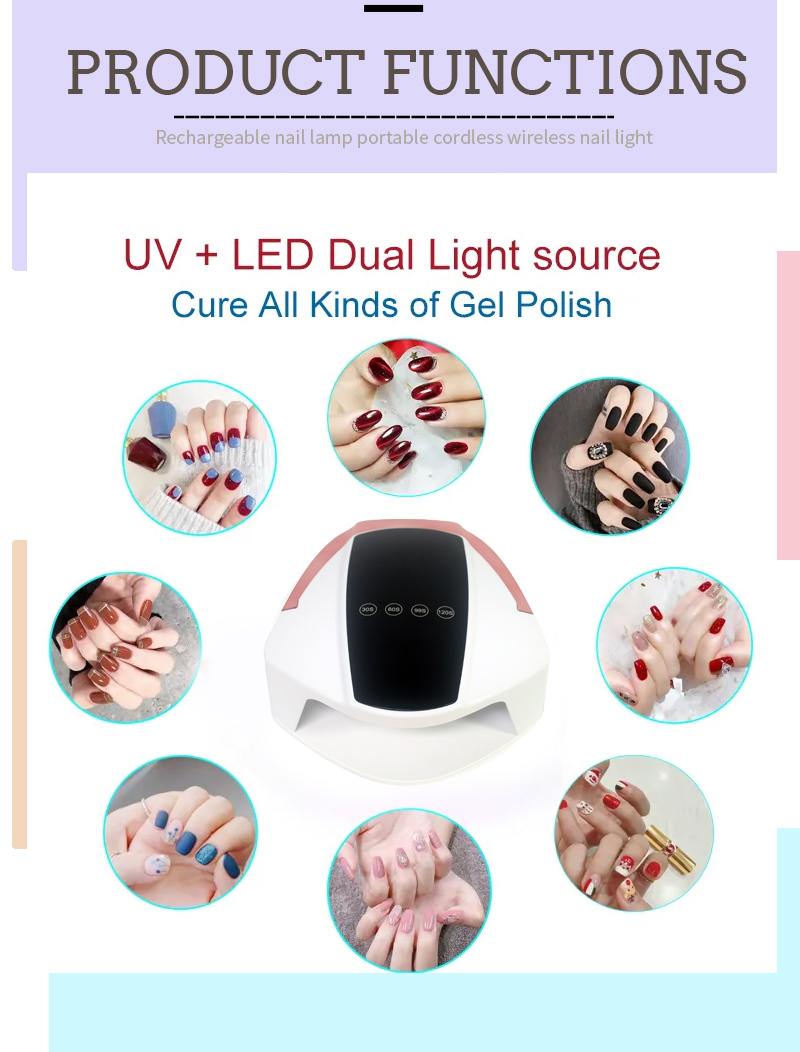 1, dalawahang ilaw na mapagkukunan ng LED beads, maaaring maghurno ng iba't ibang mga pandikit ng kuko at functional glue.