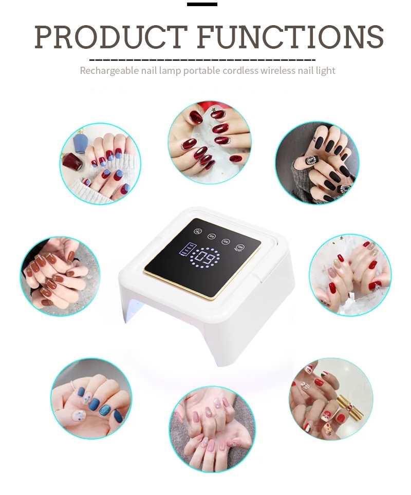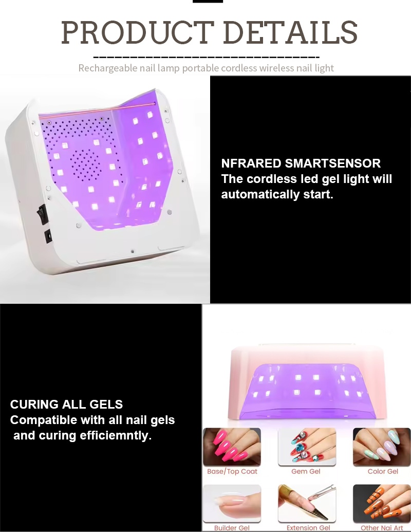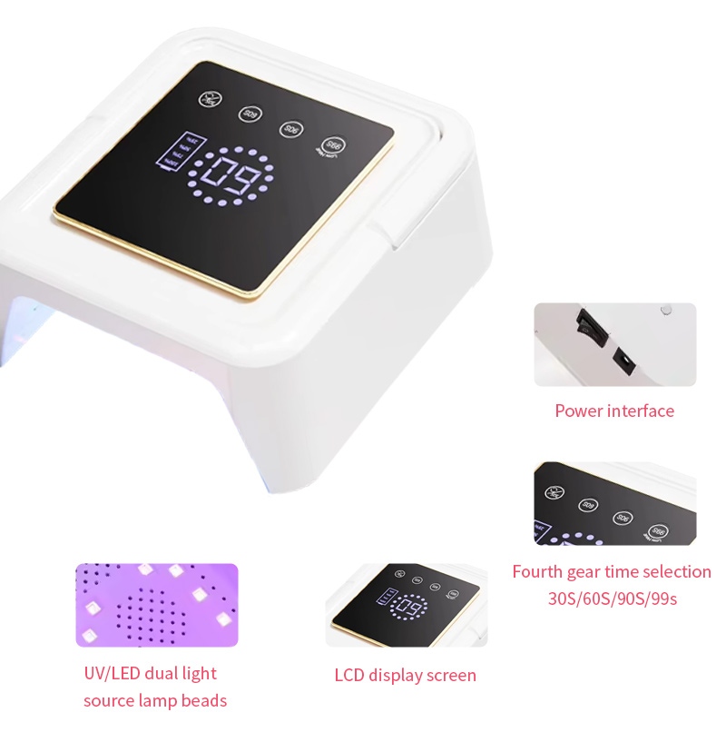 Ang square nail drying lamp ay nagtatampok ng infrared smart sensing technology na awtomatikong nag-iilaw kapag lumalapit ang mga kamay at namamatay kapag lumalayo ang mga kamay—inaalis ang abala ng paulit-ulit na pagpindot sa mga button at nakakatipid ng oras at pagsisikap. Ang high-power baking glue ay hindi nangangailangan ng mahabang paghihintay, na nakakatipid ng oras at pagsisikap.