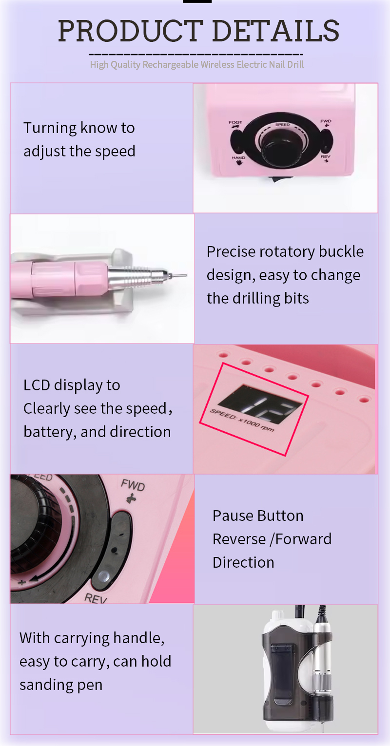 Portable Nail Drill Set Electric With Powerful Motor 65w 35000rpm
