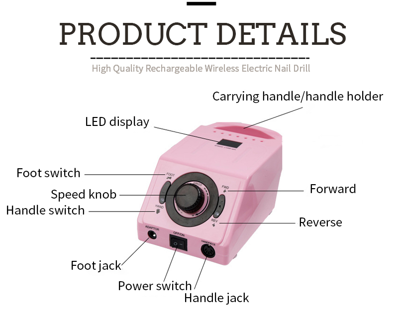 Nail Drill Electric Hindi Madaling Masira Handpiece 65w 35000rpm