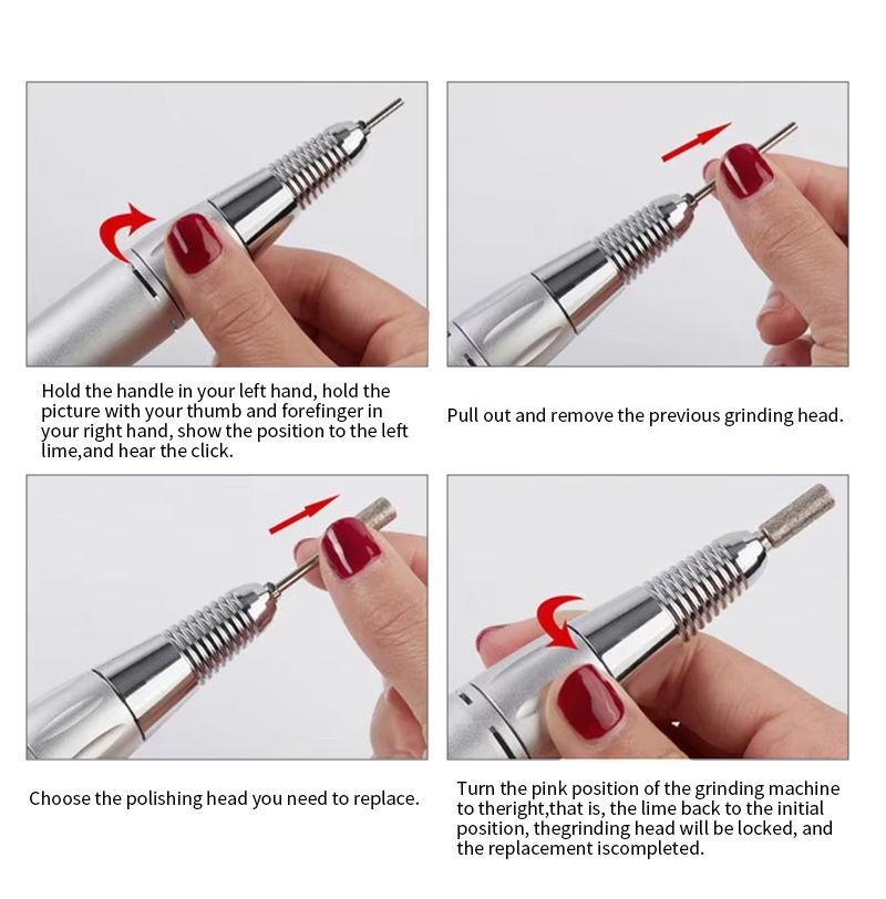 Ang wireless electric nail drill na ito na may 35,000 rpm replacement drill operation method, iyon ay, plug at pull out, madali at maginhawa, maaaring gamitin ang pagpapalit pagkatapos makumpleto.