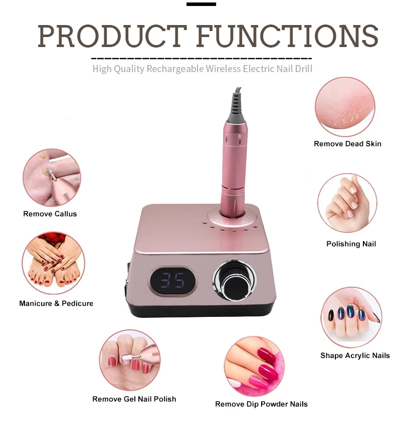 Tampok At Paglalapat ng Wireless Electric Nail Drill na may 35,000 RPM